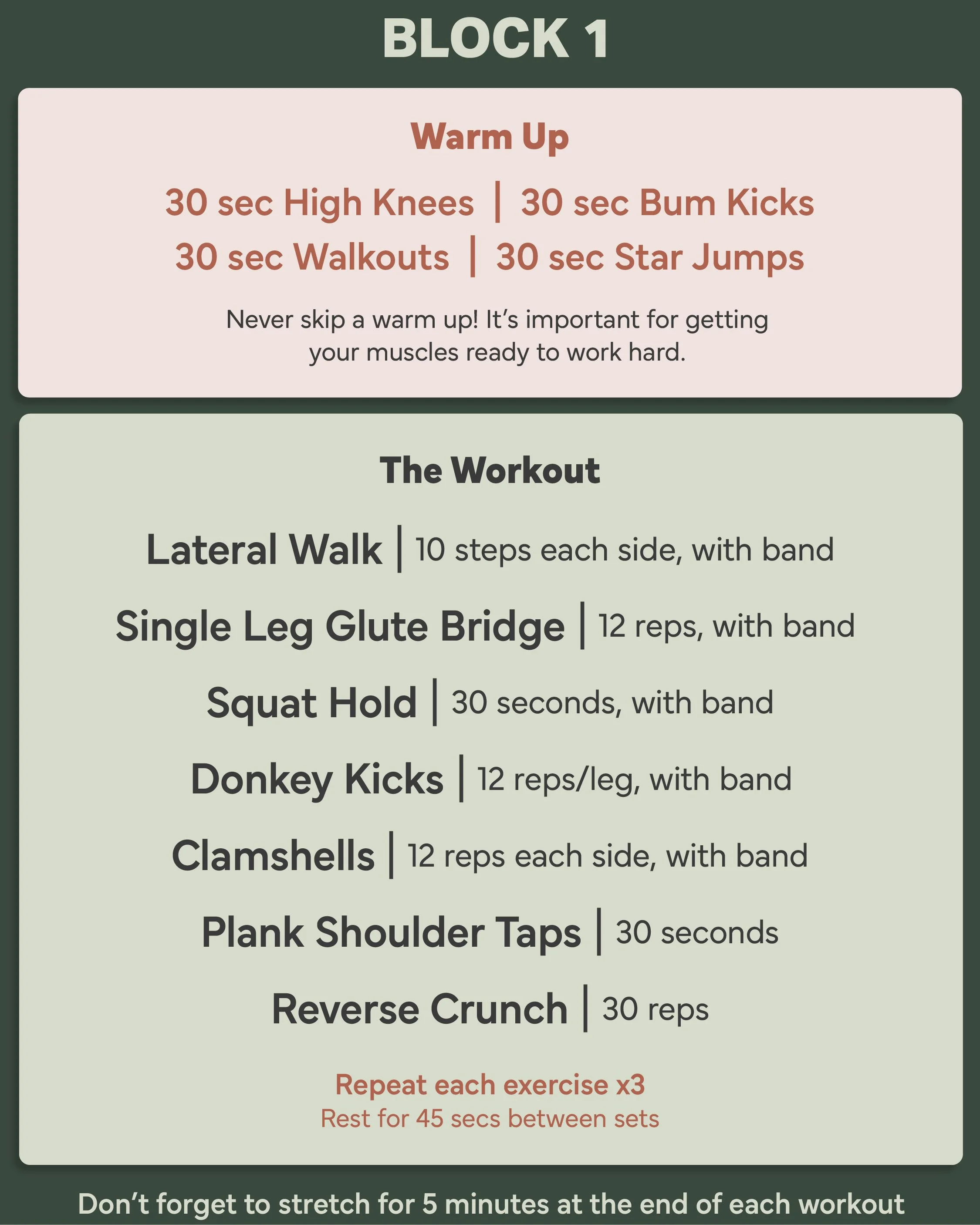 This plan includes a mix of bodyweight and glute band exercises.